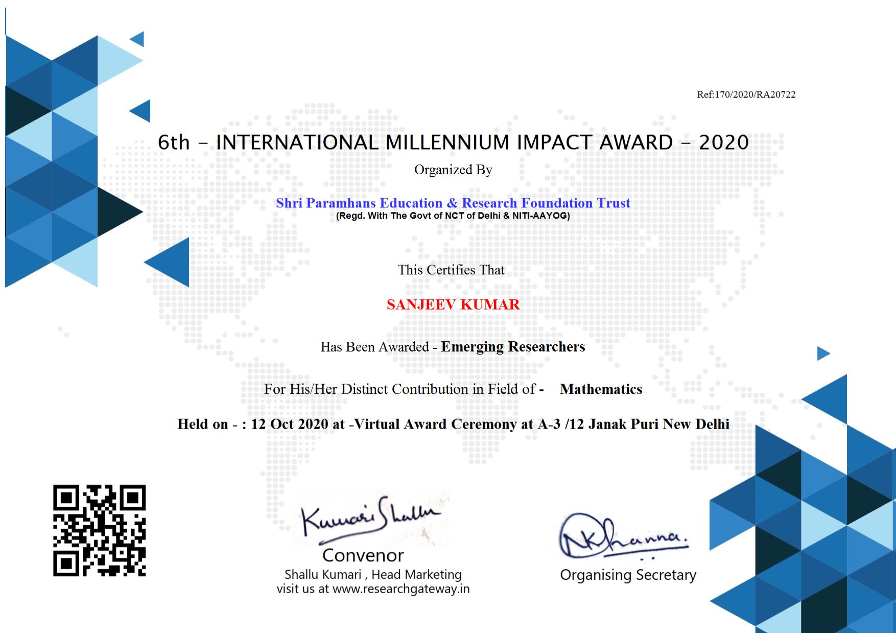 Nominated for: Best Researcher Award (Mathematics)