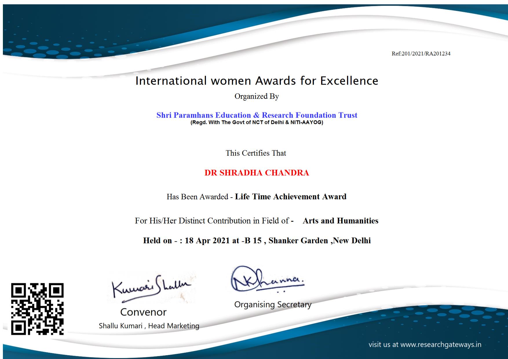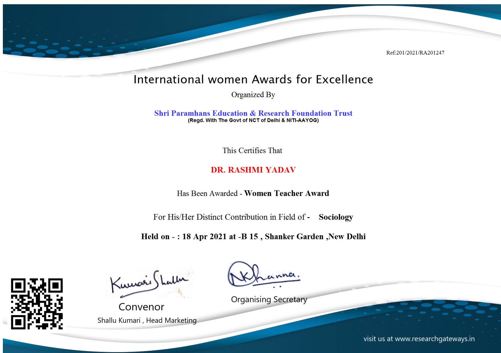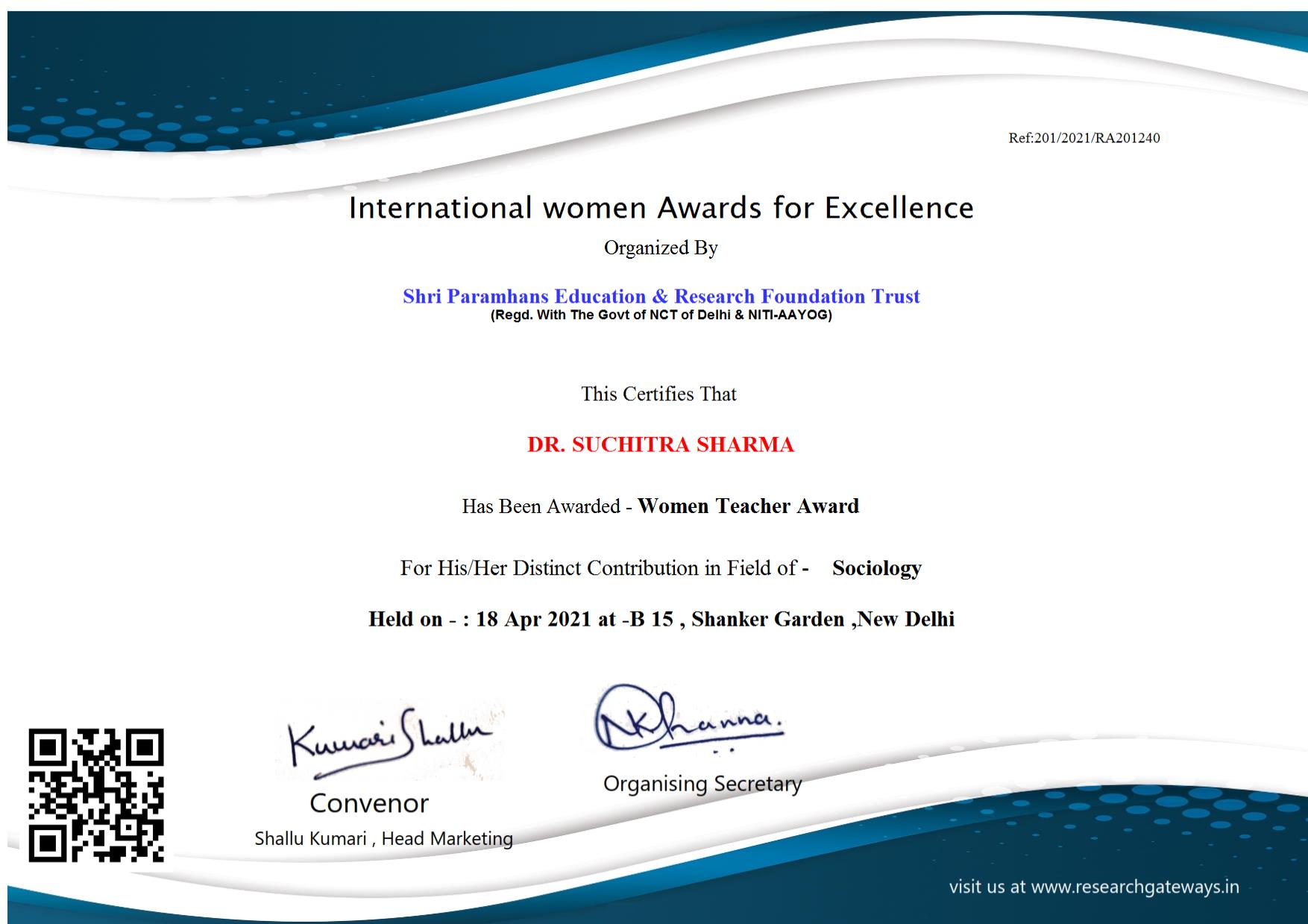 Nominated for: Women Teacher Award  (Arts and Humanities)